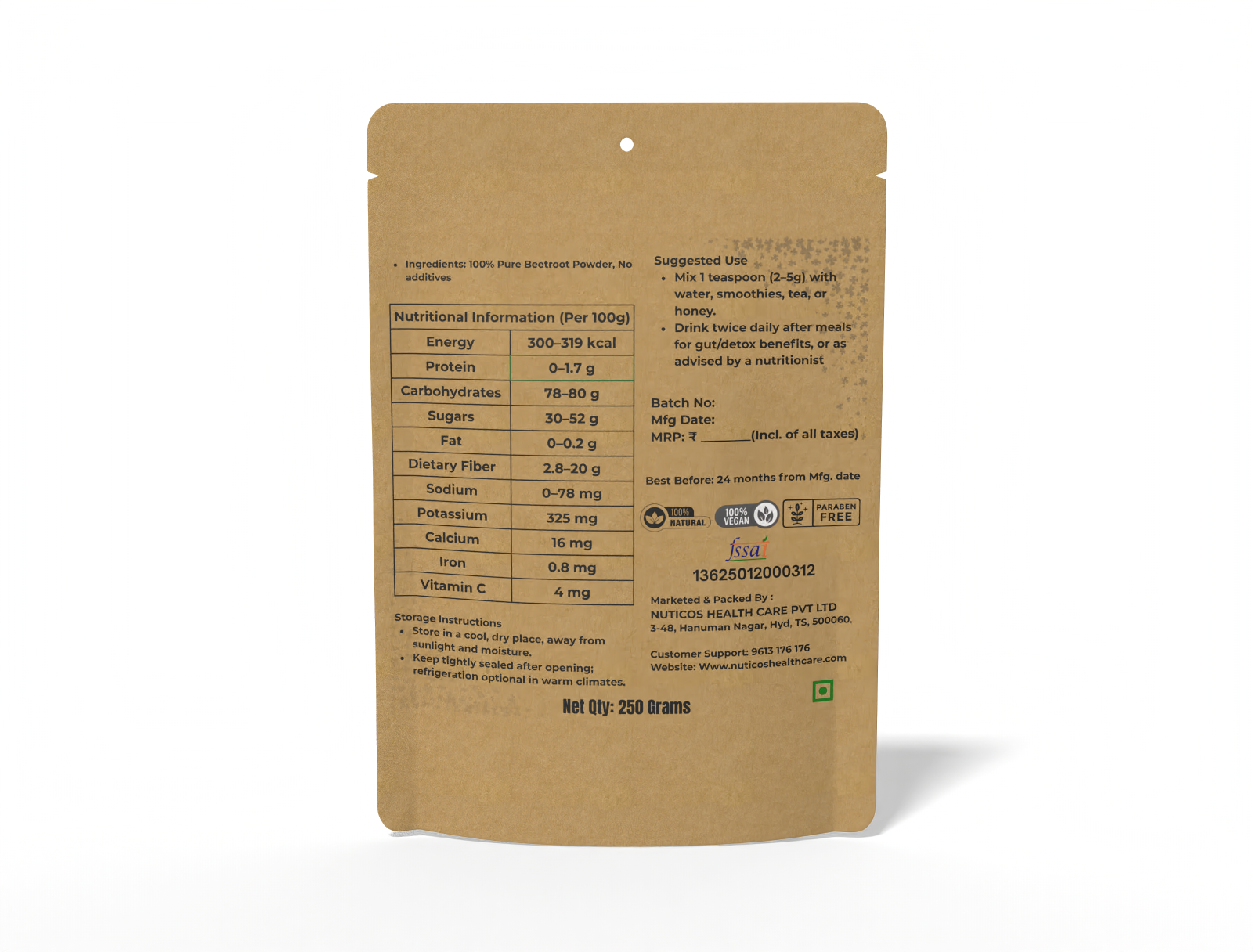 Nuticos Beetroot Powder is a natural supplement and herbal remedy designed to support cardiovascular health, boost energy, and enhance overall wellness. Rich in antioxidants and essential nutrients, it promotes stamina, detoxification, and daily vitality, making it ideal for holistic preventive care.