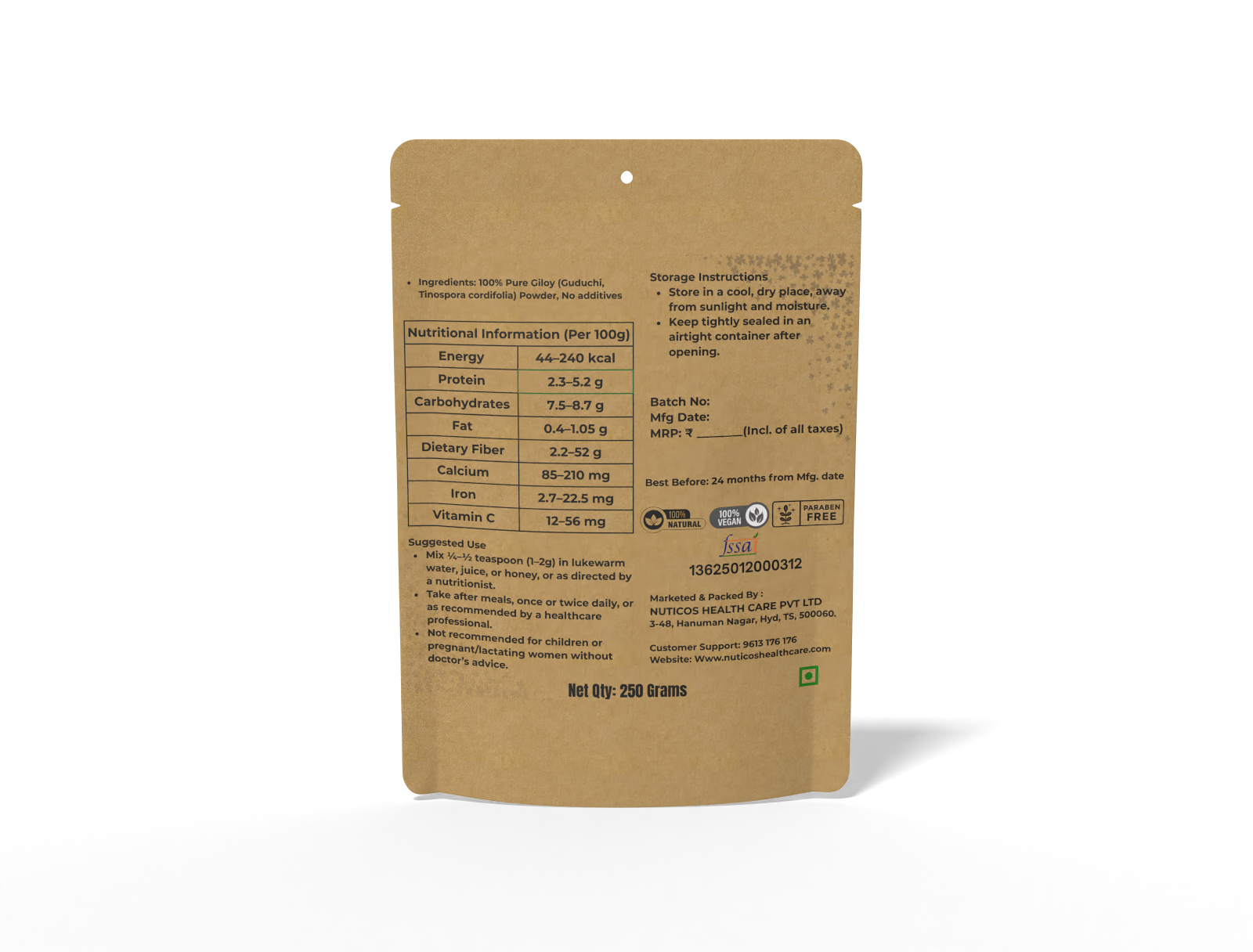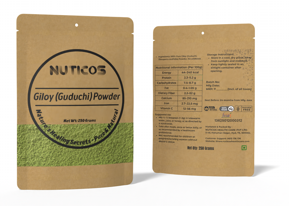 Nuticos Giloy Powder is a natural supplement and herbal remedy crafted to enhance immunity, reduce stress, and support overall wellness. Known for its adaptogenic and antioxidant properties, it helps maintain vitality, balance body systems, and supports daily preventive care naturally.