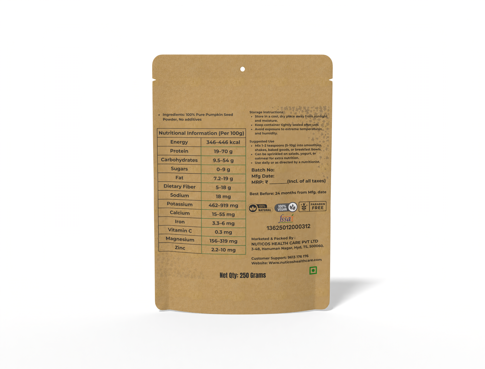 Nuticos Pumpkin Seed Powder is a natural supplement and herbal remedy designed to support overall wellness, promote heart and prostate health, and enhance energy levels. Rich in essential nutrients, it helps maintain a balanced diet, supports daily preventive care, and contributes to holistic well-being naturally.